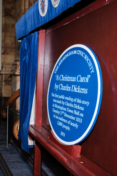 Nicola Gauld, Co-Chair of the Birmingham Civic Society Heritage Committee, added: “Birmingham Civic Society is pleased to award a blue plaque to commemorate the first ever reading of one of the world’s most famous stories, A Christmas Carol, given by Charles Dickens in December 1853 at the Town Hall. The Heritage Committee was intrigued to hear this story and strongly felt that it was a significant event in Birmingham’s past that should be commemorated and celebrated.”